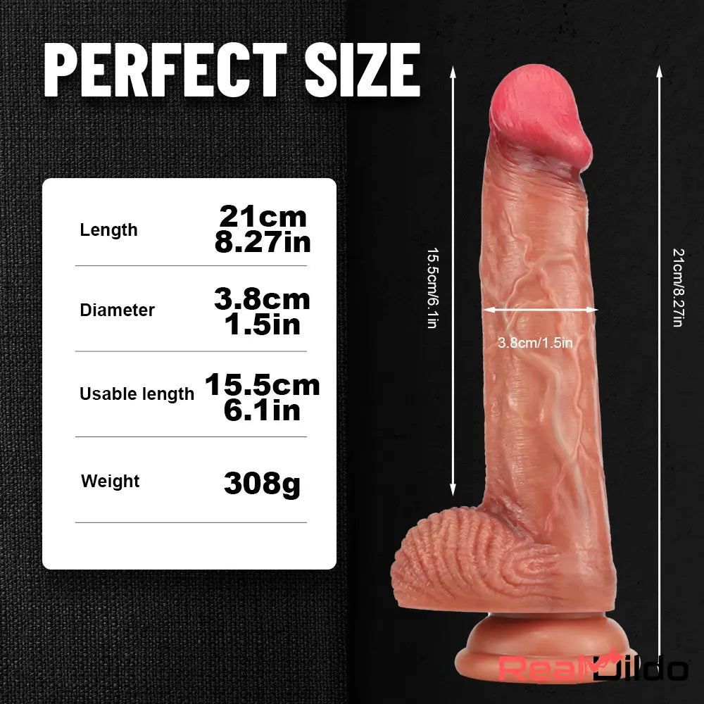 8.27in Real Skin Dildo Safe Silicone Sex Toy For Women Men Masturbator